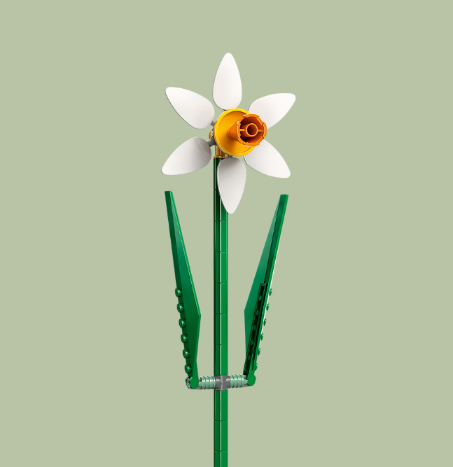 Includes: LEGO daffodils, stems, and optional greenery accents